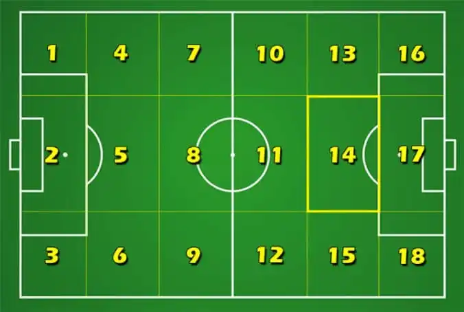 Zone 14 is a tactical concept that stems from dividing the pitch into a 6×3 grid, creating 18 rectangular zones across the field. This spatial division helps analysts and coaches better understand where decisive moments in football occur.